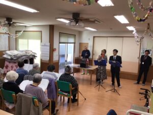 施設での入浴支援やお食事、体操や集団レクリエーションなどを行います。